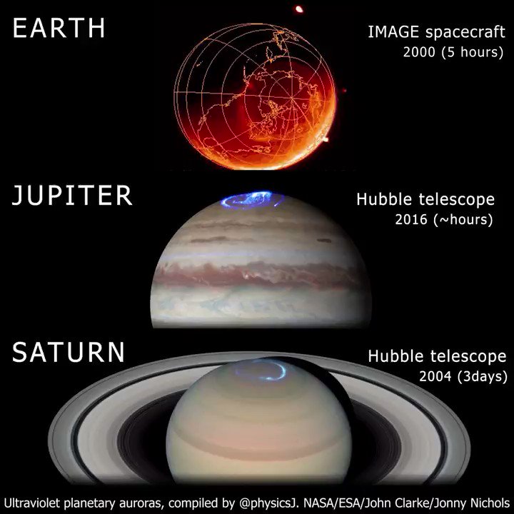 James O'Donoghue on Twitter: "Real footage of planetary auroras in the ultraviolet added to reference spheres. Earth: massive geomagnetic storm recorded by spacecraft! Jupiter and Saturn: UV aurora captured by Hubble Space